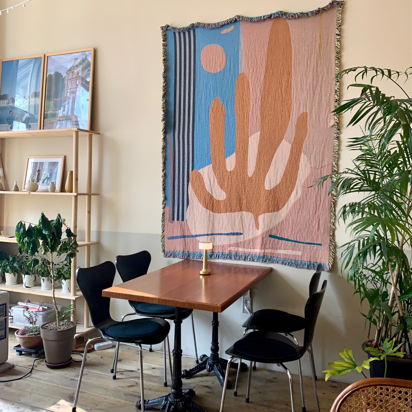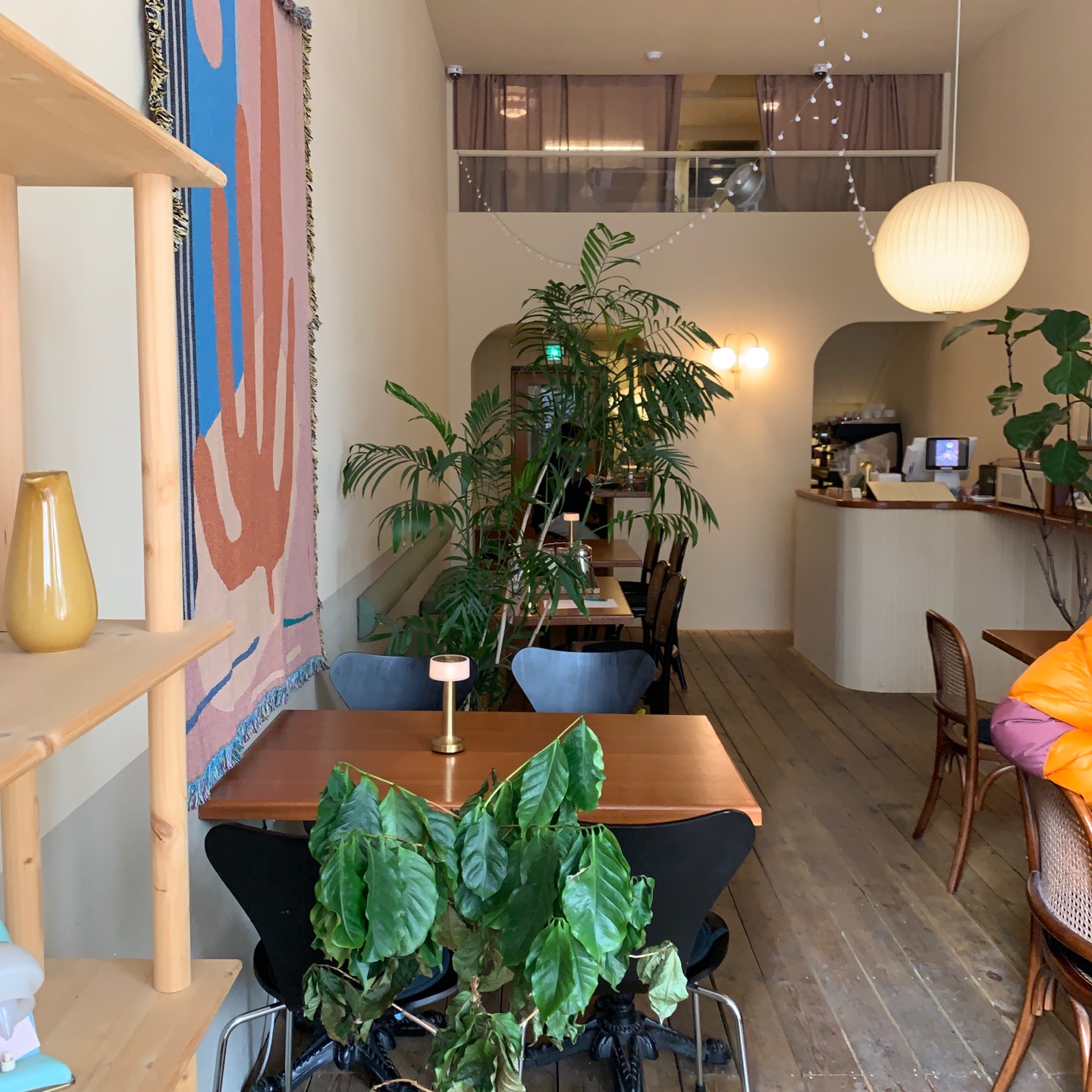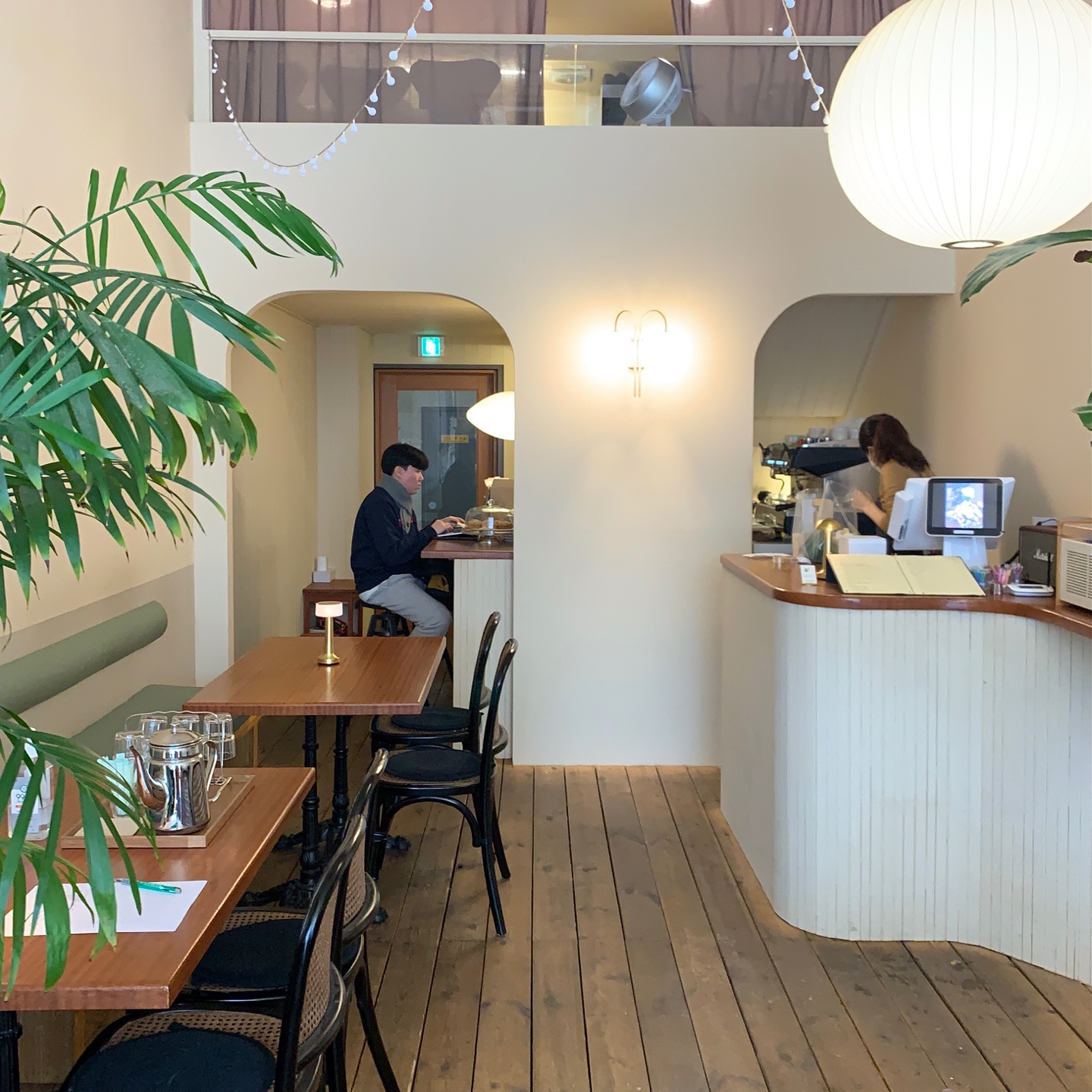 내부는 넓지도 아담하지도 않다. 인터루드커피의 가장 큰 장점은 공간을 매우 잘 활용했다는 점이다. 테이블 배치 구조가 조금 특이한데, 오른쪽 모퉁이의 카운터를 기준으로 바가 있고 길쭉한 세로의 통로엔 2인석, 4인석이 나란히 비치되어 있다. 입구 쪽엔 햇살이 잘 드는 창가 자리가 있고 적당한 간격의 2-4인석 테이블이 놓여 있다. 많은 인원을 수용할 수는 없어도 참 매력적인 공간이구나. 하는 생각이 들었다.