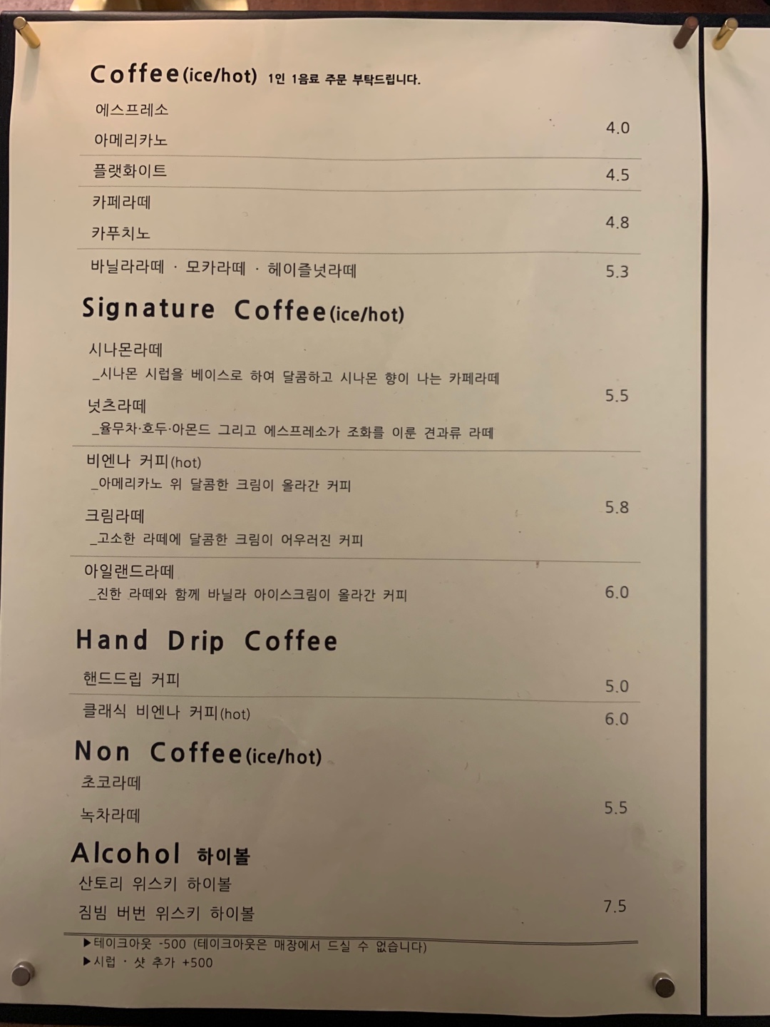 플랫화이트는 고소하고 묵직했다. 첫 모금엔 섞지 않고 크레마와 우유를 함께 마셨다. 씁쓸하면서도 깊은 맛이었다. 원두는 전체적으로 산미가 없는 듯 했다. 숟가락으로 잘 저어 마시니 고소하고 부드러운 맛을 마주할 수 있어 좋았다.
