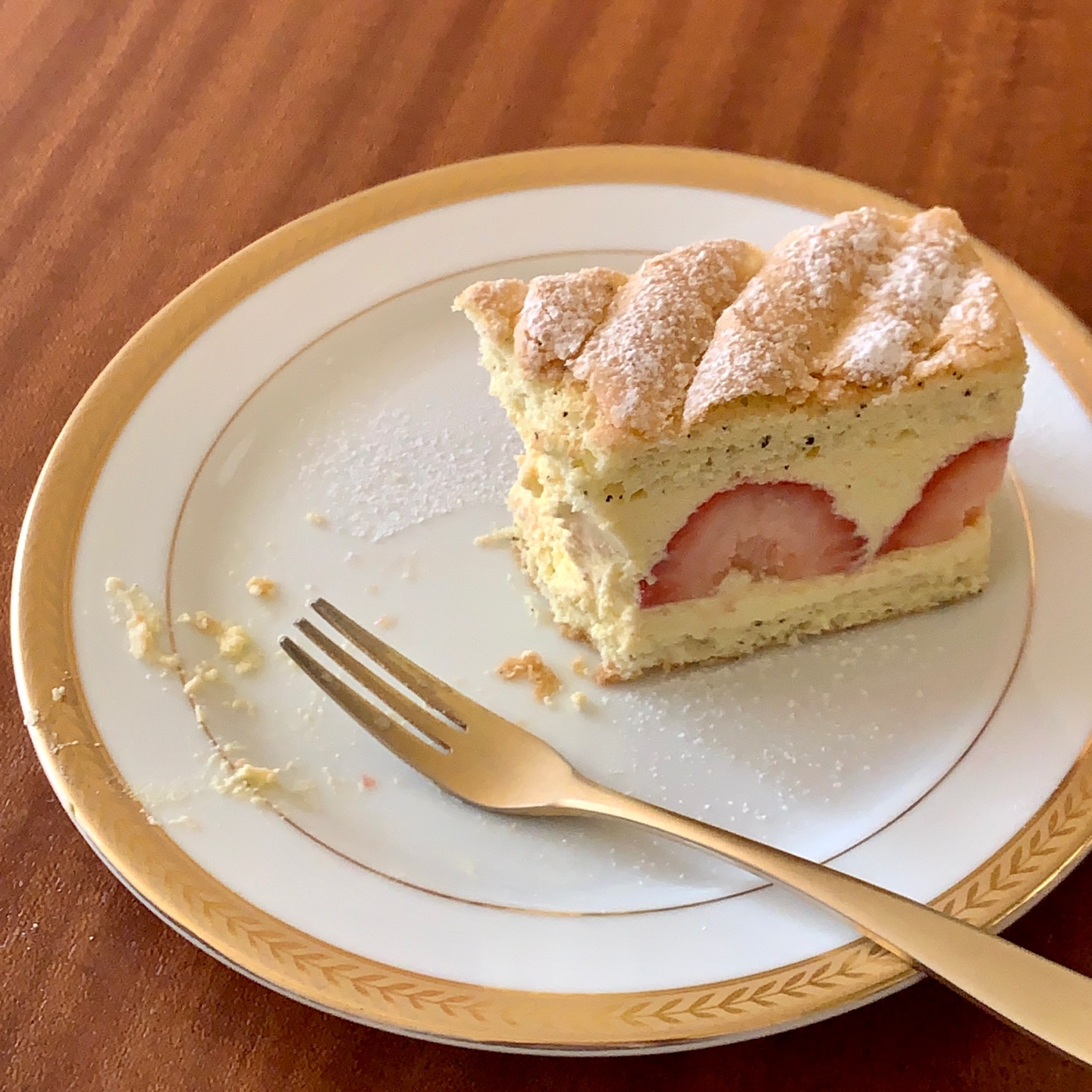 한편 케이크에 칠해진 크림의 맛이 독특했다. 바닐라 빈이 콕콕 박힌 게 바닐라 크림 같기도 하고 커스터드 크림 같기도 한 게, 참 오묘한 맛이었다. 알고 보니 스퀘어 후르츠 케이크는 계절 과일 케이크였다. 얼그레이를 넣은 촉촉한 시트에 달콤한 커스터드 버터크림을 샌드하고 계절과일을 첨가한, 알록달록 매력만점인 케이크. 겨울 과일답게 딸기는 당도가 어느 정도 잡혀 있어 버터크림은 상대적으로 덜 달다. 얼그레이 시트를 사용했지만 얼그레이 맛은 미미한 수준으로 잘 느껴지지 않았다.