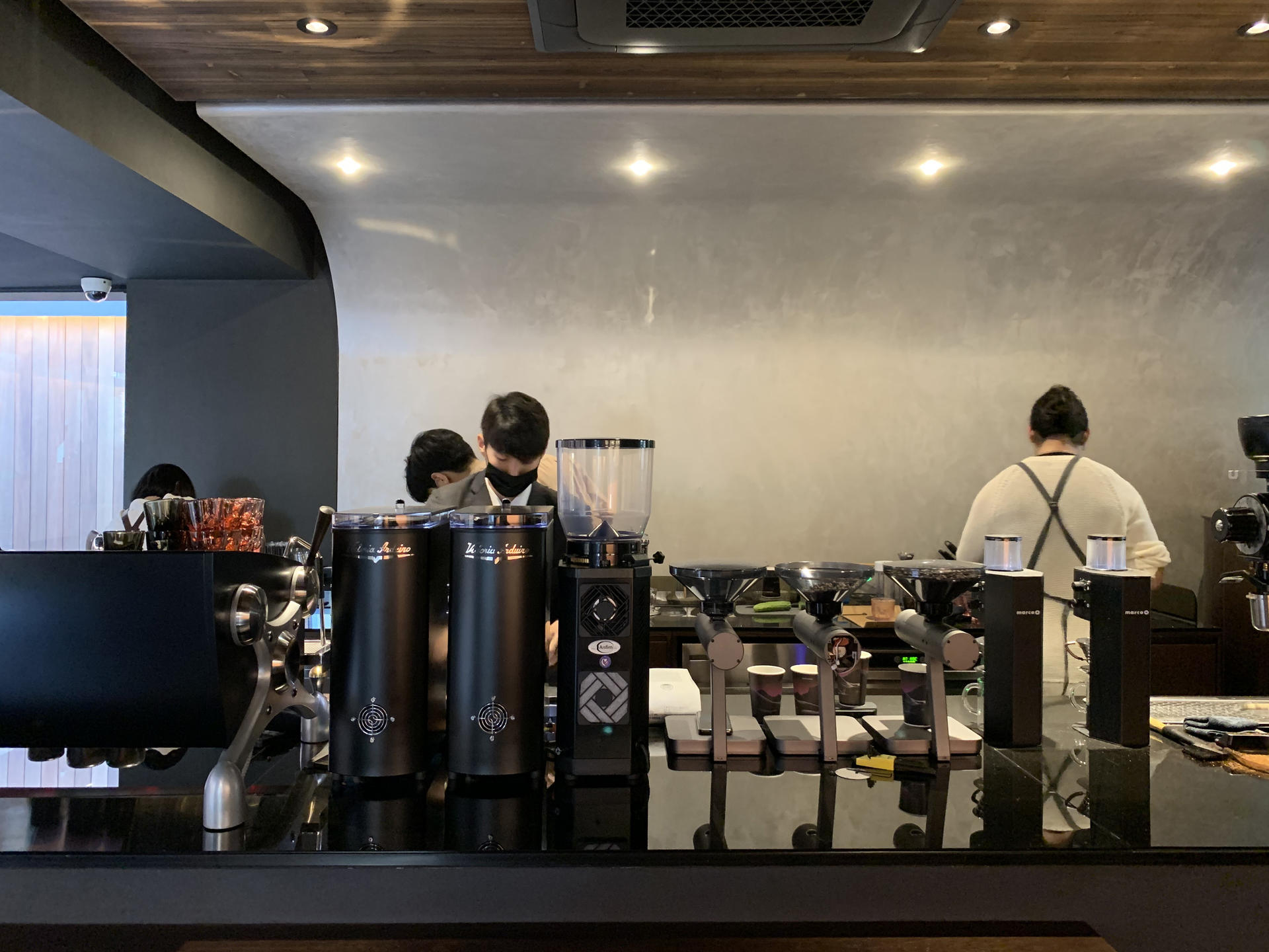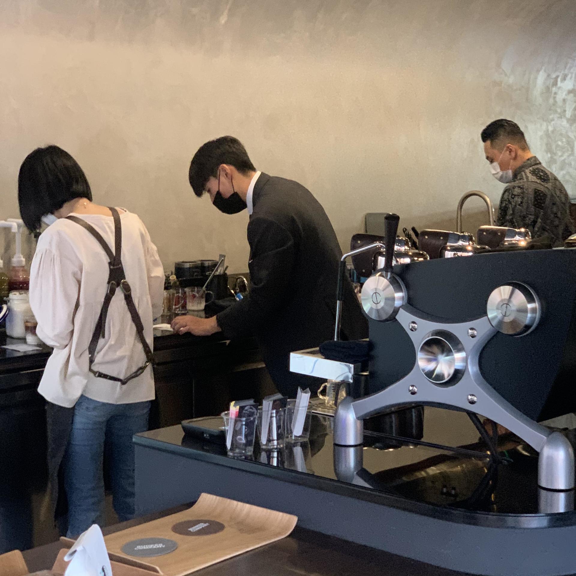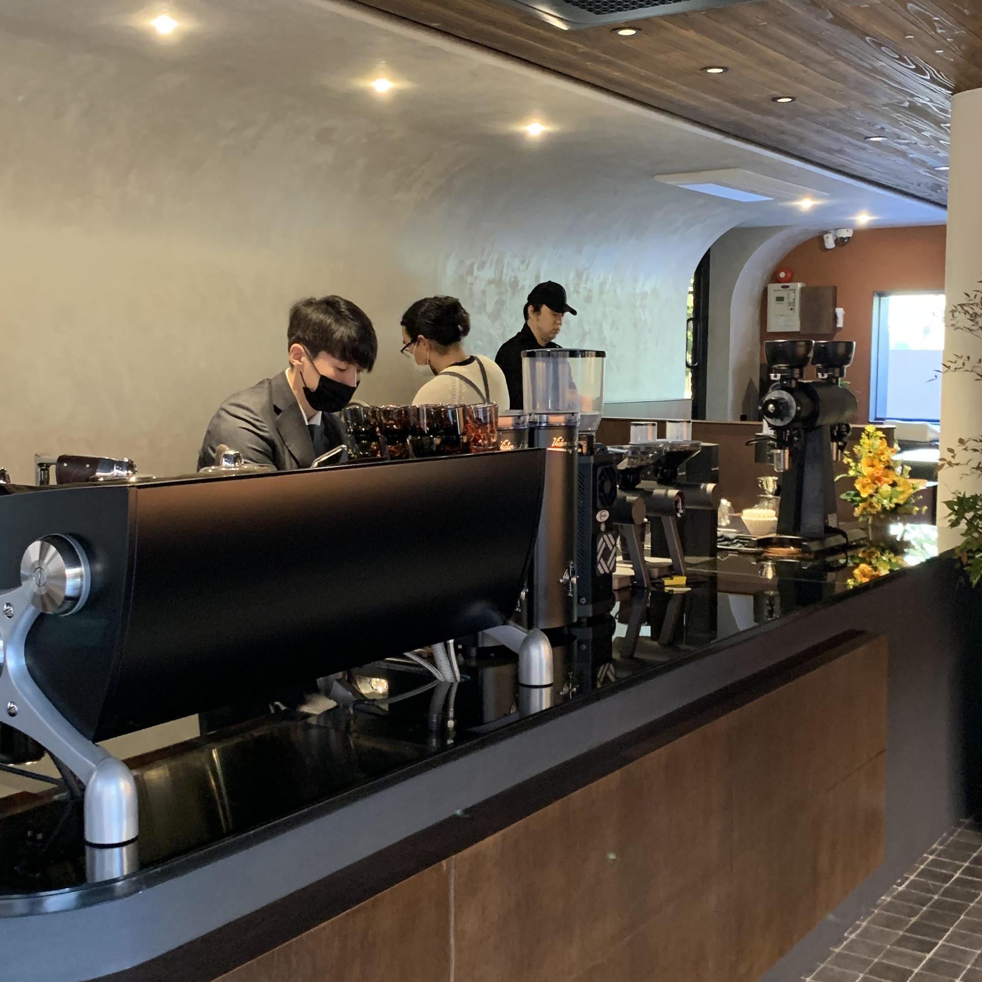 커피만큼 좋았던 것은 유리창 너머 보이던 골목길의 고요함과 바를 바삐 오가는 바리스타들의 분주함이었다. 사람 많은 곳을 피하고 시끄러운 카페는 잘 안 가게 되는 나임에도 벙커컴퍼니의 공간은 묘한 매력이 있어 계속 더 머물고 싶었다. 모순적이게도, 바로 옆에 놓인 스피커에서 흐르던 펑키한 음악은 유리 창 너머 보이던 가로수들의 고요함과 잘 어울렸다. 오픈 첫날이라 얼마나 분주하고 정신없을까. 손님은 계속 들어오고 바리스타들의 손과 발은 이리저리 바삐 움직였지만, 묵묵히 커피를 내리고 손님을 응대하는 모습이 수선스러우면서도 그 모습이 제법 조화로웠다.