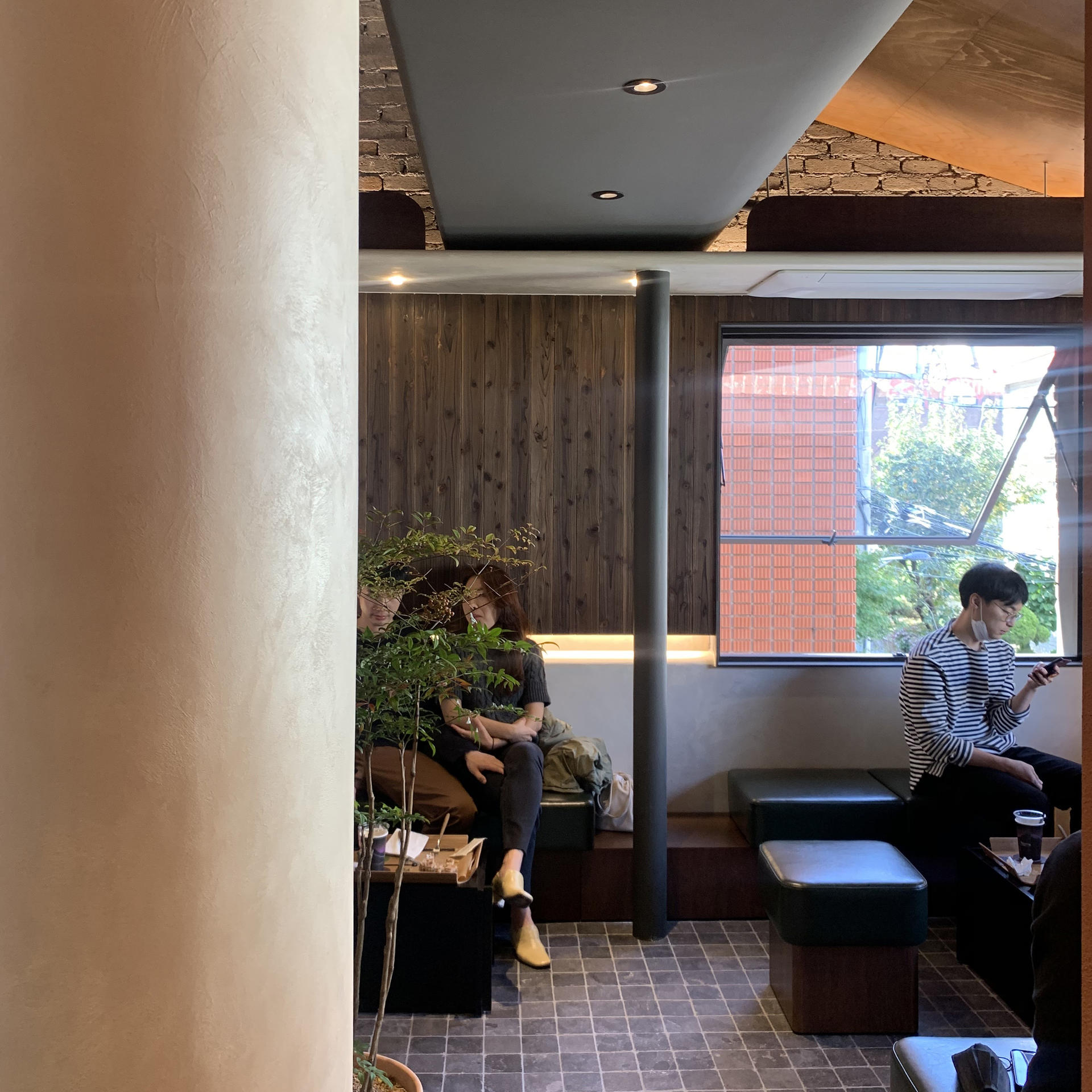 자갈돌이 깔린 길을 따라 안으로 들어서면 바로 주문할 수 있는 카운터가 보인다. 건물 안과 밖 곳곳에 늠름한 식물들이 많이 보여 좋았다. 서교동의 ‘앤트러사이트’와도 느낌이 비슷했는데, 아무쪼록 압구정에서 연남동 감성을 약간 느낄 수 있어 새로웠다.