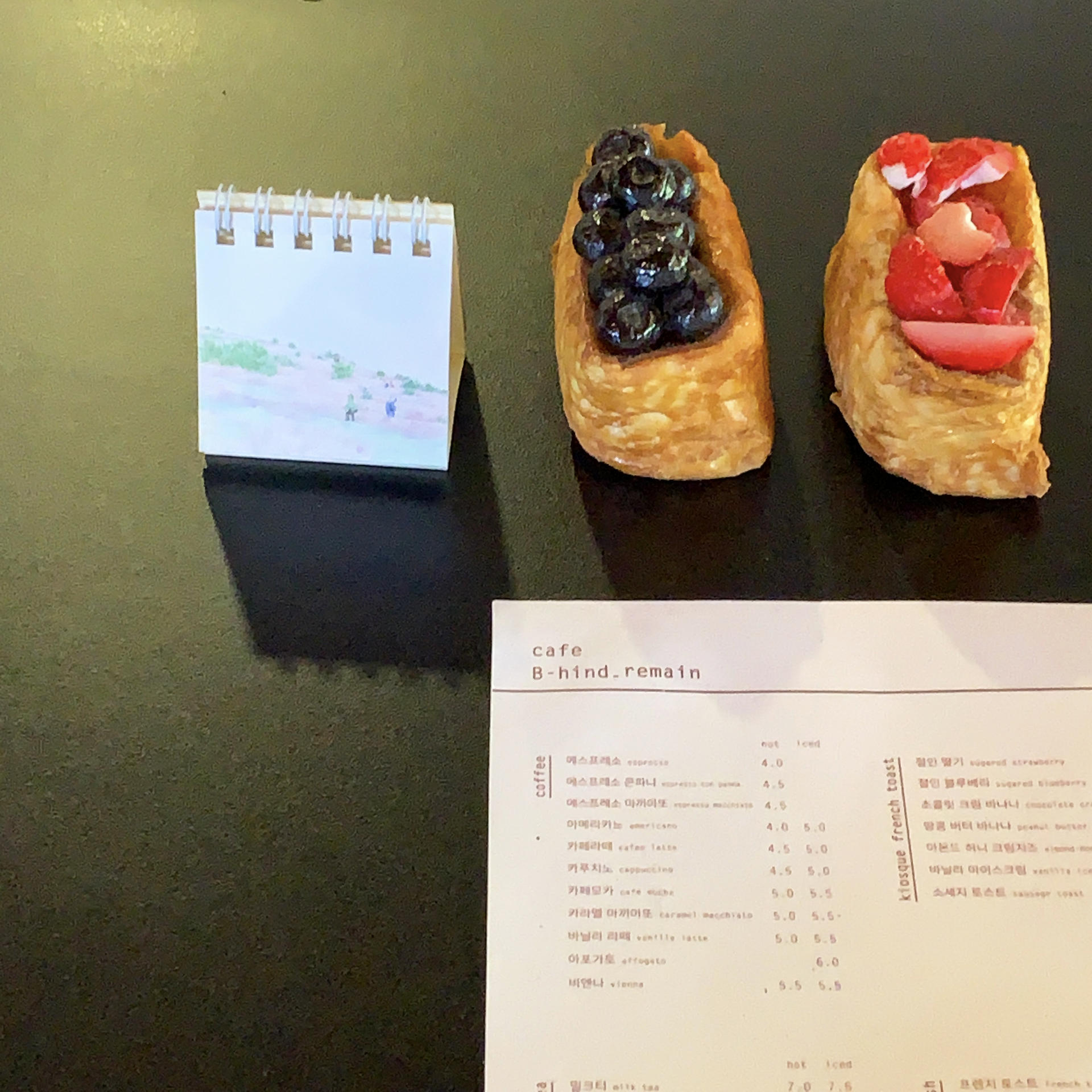 나는 아이스바닐라라떼와 절인 블루베리가 올라간 프렌치토스트를 주문했다. 매장엔 대부분 뉴에이지나 클래식한 음악이 흘렀다. 손님 대부분이 음료 메뉴와 더불어 토스트를 시키곤 해서 기다리는 내내 카페에서 달짝지근한 토스트 굽는 냄새가 퍼지기도 했다.