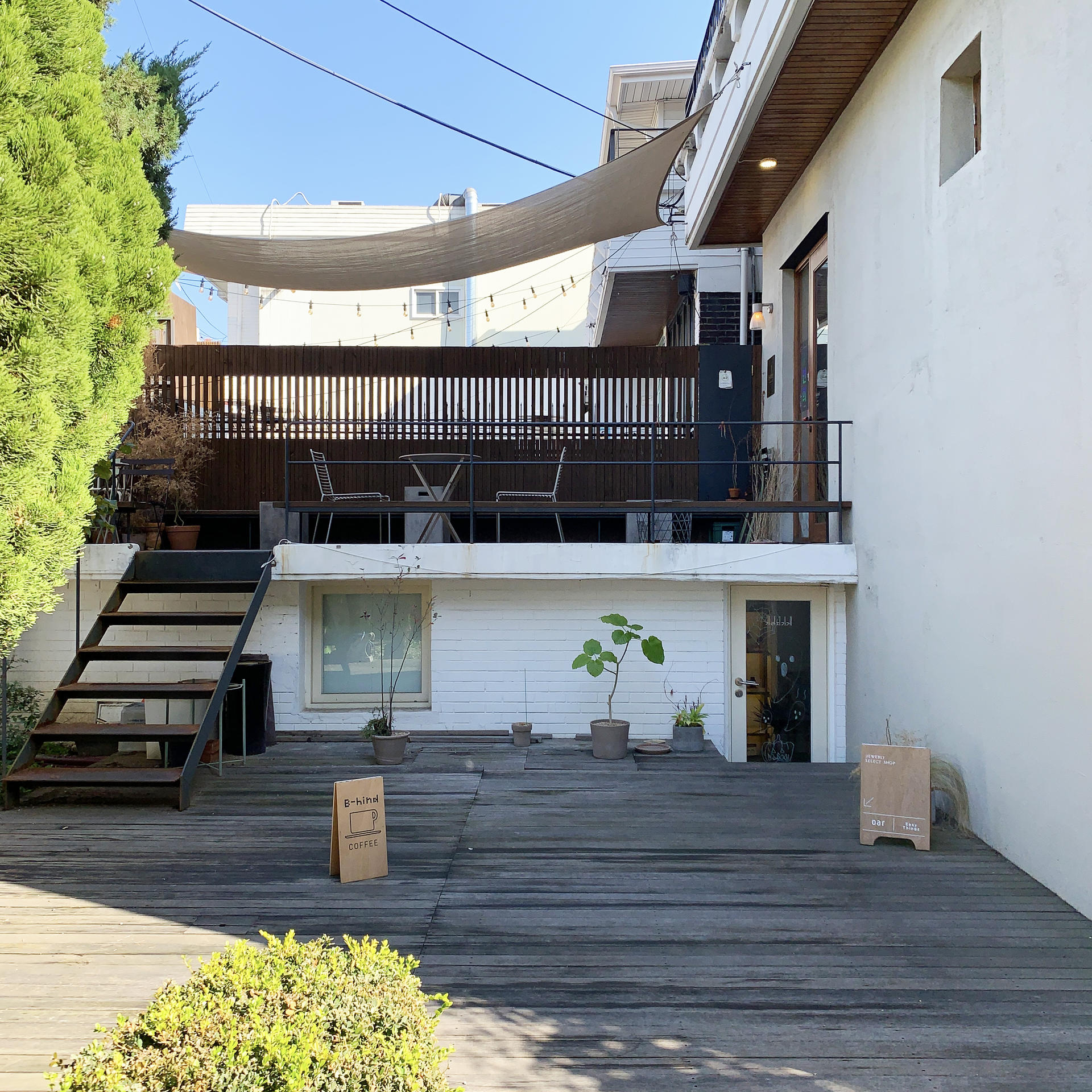 연남동이 젊은이들로 북적이는 동네라면 연희동은 그에 반해 훨씬 한적하고 고요하다. 즐비하게 늘어서 있는 주택과 아기자기한 상점, 카페가 있는 골목을 좀 걷다 보면 커다란 주택이 보인다. 정문 안으로 들어서면 푸른 소나무와 매실나무가 그 자태를 뽐내고 있고, 잎사귀 사이사이엔 잔잔한 햇살이 스며있다. 제법 큰 나른한 오후의 정원이었다. 대문을 기준으로 오른쪽은 독립서점, 왼쪽엔 카페 그리고 소품샵 및 쥬얼리샵이 있다.
