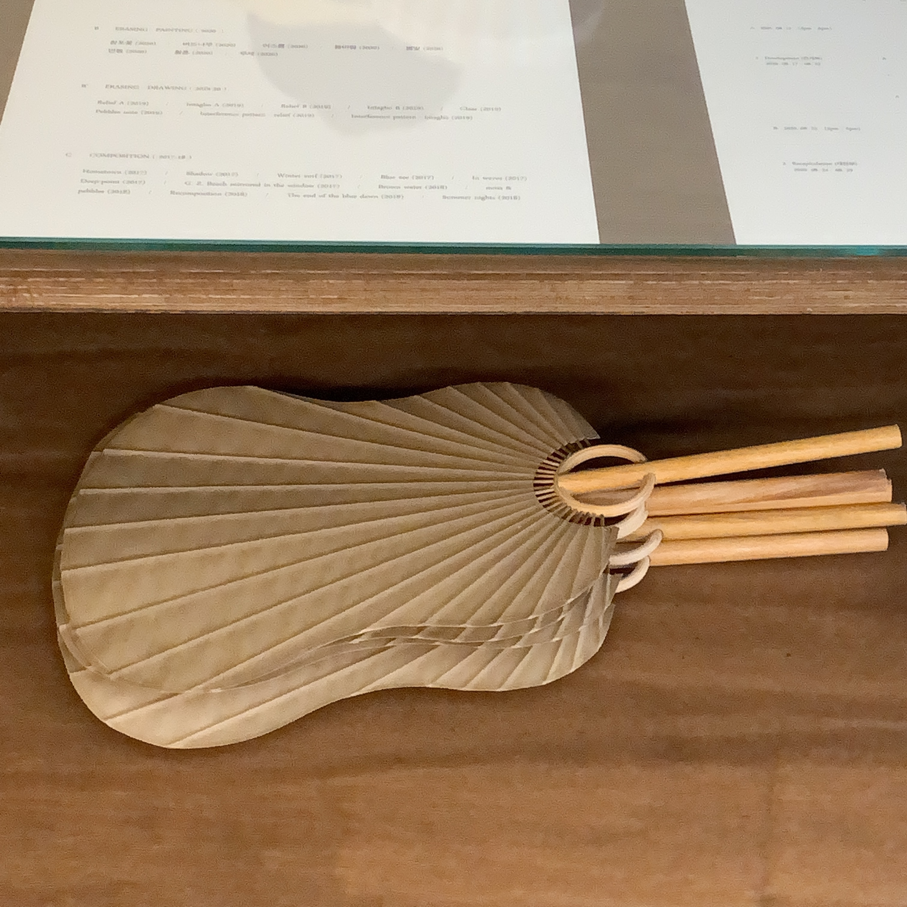 살구다방에서 유명한 것이 또 있다. 바로 커피 물로 염색한 부채다. 흰 필터지에 드립을 내리고 나면 종이에 커피 물이 고스란히 배어있는 모습이 예뻐, 거기에서 영감을 얻었다고 한다.